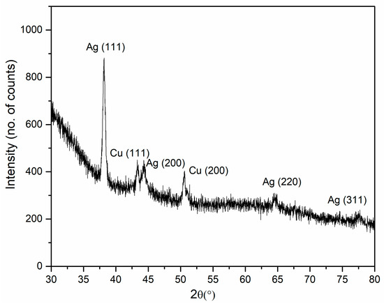 XRD spectrum of copper-silver bimetallic nanostructures.