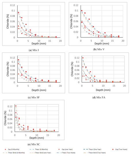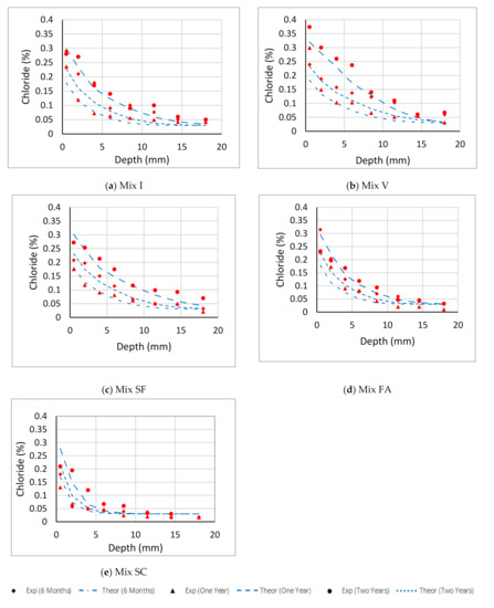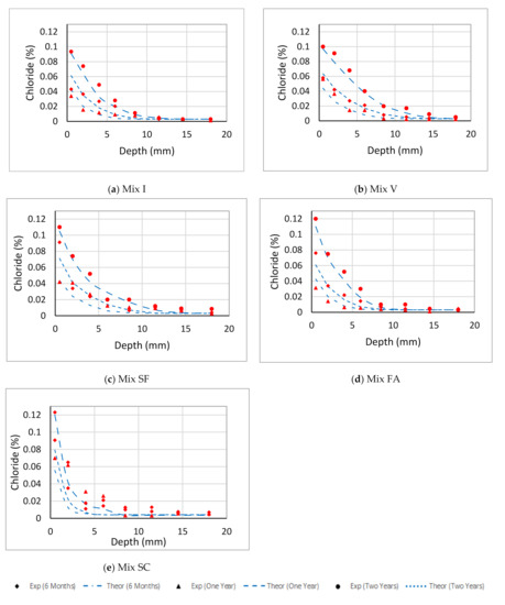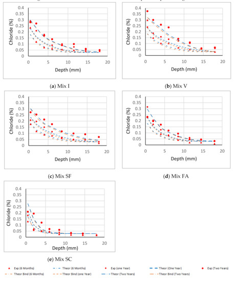40. Thomas, M.D.A.; Bamforth, P.B. Modelling chloride diffusion in concrete effect of fly ash and slag. Cem. Concr. Res. 1999, 29, 487–495. [Google Scholar] [CrossRef]