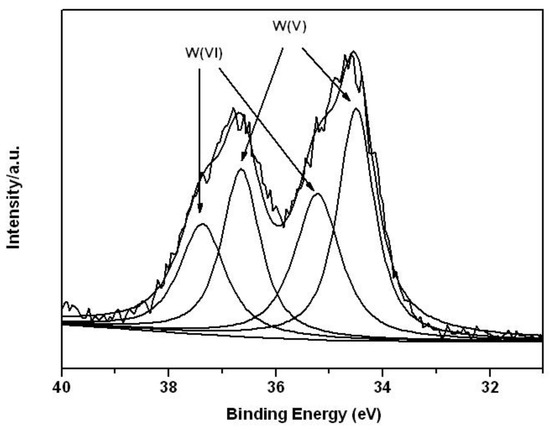 Peak-fitting results of W4f XPS spectra of the catalyst.