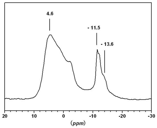 TiO2-Photocatalyzed Epoxidation of 1-Decene by H2O2 under Visible Light. The solid-state 31P NMR spectroscopy of GO-POMs was also measured to investigate the species of peroxophosphotungstate. The spectrum of the fresh catalyst (Figure 7) gave two main peaks at 4.6 and −11.5 ppm. The one at −11.5 ppm was assigned to heteropoly tungstophatosphates with a Keggin structure, which was close to the value (−11.7 ppm) described by Radkov and Beer [47] for (n-Bu4N)4H3[PW11O39]. The GO-POM gave a weak signal at −13.6 ppm related to the saturated Keggin structure because the highly nucleophilic monovacant lacunary Keggin units tended to be saturated by grafting with electrophilic C-OH groups, and this finding is consistent with a previous study [48]. According to the results of previous studies [14,49,50,51], it had been reported that the [31] P NMR peaks at 4.1, 2.6 and −1.5 ppm were attributed to [(PO4){WO(O2)2}2{WO(O2)2(H2O)}]3−, [(PO4){WO(O2)2}4]3−, and [(PO3(OH)){WO(O2)2}2]2−, respectively. Thus, the broad peak centered at 4.6 ppm could be decomposed into three peaks at 4.6, 2.6, and −2.0 ppm. These three peaks could be assigned to [(PO4){WO(O2)2}2{WO(O2)2(H2O)}]3−, [(PO4){WO(O2)2}4]3− and (PO3(OH)){WO(O2)2}2]2−. There were the three species of peroxotungstates in GO-POM.