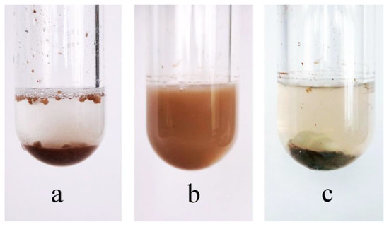 Different stages of epoxidation: (a) Before reaction; (b) during the reaction; (c) after the reaction.