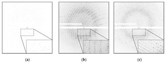 - Kabsch, W. Processing of X-ray snapshots from crystals in random orientations. Acta Crystallogr. Sect. D Struct. Biol. 2014, 70, 2204–2216. [Google Scholar] [CrossRef]