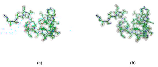 - Murshudov, G.N.; Skubak, P.; Lebedev, A.A.; Pannu, N.S.; Steiner, R.A.; Nicholls, R.A.; Winn, M.D.; Long, F.; Vagin, A.A. REFMAC5 for the refinement of macromolecular crystal structures. Acta Crystallogr. Sect. D Struct. Biol. 2011, 67, 355–367. [Google Scholar] [CrossRef]