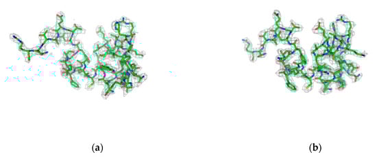 - Vagin, A.A.; Teplyakov, A. MOLREP: An automated program for molecular replacement. J. Appl. Crystallogr. 1997, 30, 1022–1025. [Google Scholar] [CrossRef]