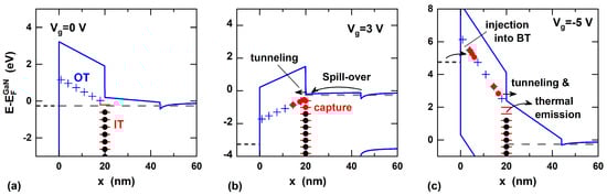 - Grasser, T. Stochastic charge trapping in oxides: From random telegraph noise to bias temperature instabilities. Microelectron. Reliab. 2012, 52, 39–70. [Google Scholar] [CrossRef]