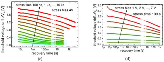 - Kaczer, B.; Grasser, T.; Roussel, P.J.; Martin-Martinez, J.; O’Connor, R.; O’Sullivan, B.J.; Groeseneken, G. Ubiquitous relaxation in BTI stressing-New evaluation and insights. In Proceedings of the 2008 IEEE International Reliability Physics Symposium, Phoenix, AZ, USA, 24 April–1 May 2008; pp. 20–27. [Google Scholar]