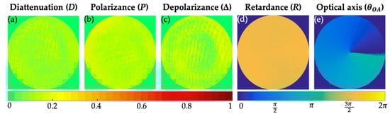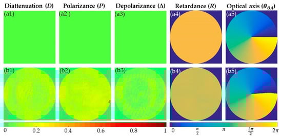 Finally, the retarder matrix . is obtained from Equation (A9) as , and the retardance parameter (R) is calculated by