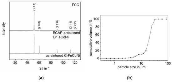 - XRD measurements reveal an FCC structure before and after ECAP-processing of sintered CrFeCoNi, showing that the single-phase state was retained. However, the peaks of the ECAP-processed material are broadened, which is typical after ECAP-processing.