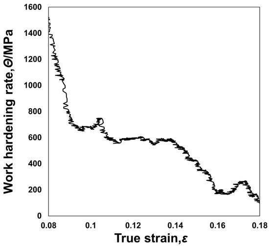 Figure 3 shows work hardening behavior of specimen A in the microcompression test and indicates the enhanced work hardening. The work hardening rate was calculated by the following equation: