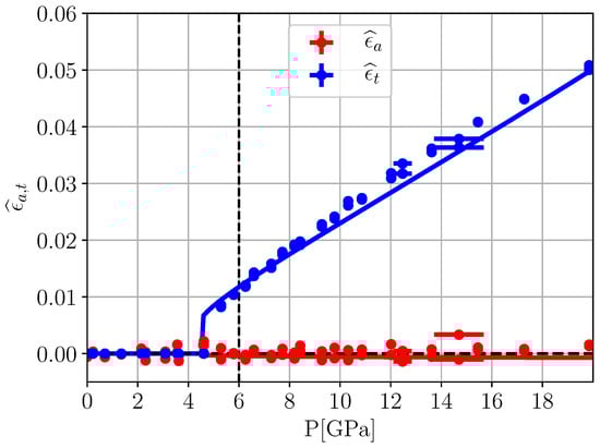 Figure 11 exhibits a steep initial decrease with increasing pressure. Since no spontaneous strain data are available for this pressure region, this does not change the physical values produced by the theory. However, it hints at a sub-optimal choice Equation (