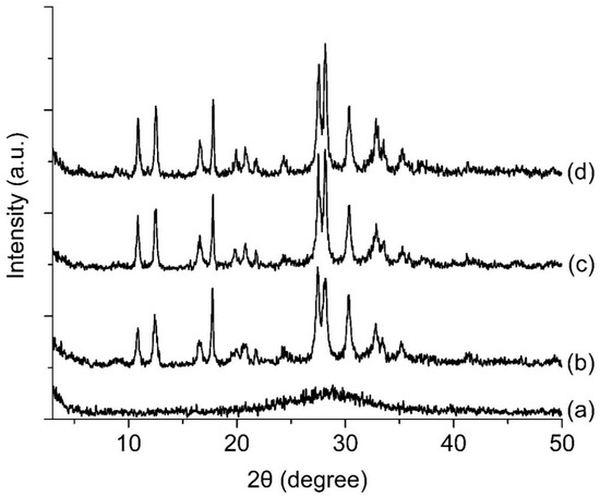 - Ng, E.-P.; Rigolet, S.; Daou, T.J.; Mintova, S.; Ling, T.C. Micro-and macroscopic observations of the nucleation process and crystal growth of nanosized Cs-pollucite in an organotemplate-free hydrosol. New J. Chem. 2019, 43, 17433–17440. [Google Scholar] [CrossRef]