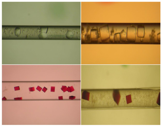 - Lorber, B.; Sauter, C.; Theobald-Dietrich, A.; Moreno, A.; Schellenberger, P.; Robert, M.-C.; Capelle, B.; Sanglier, S.; Potier, N.; Giege, R. Crystal growth of proteins, nucleic acids, and viruses in gels. Prog Biophys Mol Biol 2009, 101, 13–25. [Google Scholar] [CrossRef]