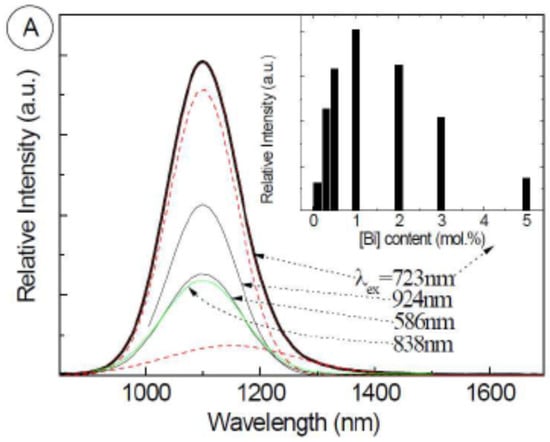 The drastically increasing interest in the investigation of various bismuth based materials, observed since 2004 and reflecting the increasing importance of these materials in modern technological applications, is clearly illustrated in Figure 1 of Ref. [11]. The quick growth of the number of publications on the bismuth luminescence can be explained by the fact that, owing to a large number of possible valence states, bismuth containing materials exhibit a rich variety of luminescence properties, showing emission from the ultraviolet to infrared. This allows the application of these materials in many areas such as telecommunication, biomedicine, white light illumination, and lasers. An excellent review on different types of bismuth-activated photonic materials, their synthesis, characterization, future research trends and prospective applications in broadband optical amplifiers, fiber lasers, bioimaging, and phosphors for white light-emitting diodes is given in Ref. [8].