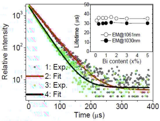 - Moncorge, R.; Boulon, G. Investigations of the absorption and emission properties along with energy transfer in pure and Bi3+ doped YVO4. J. Lumin. 1979, 18–19, 376–380. [Google Scholar] [CrossRef]