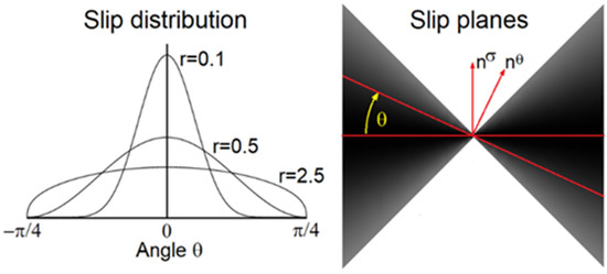 The angle and two invariants and of stress deviator complete the relation. It turns out that is the maximum shear stress. It is worth mentioning that several tensor representations have been developed and some of them are reported in [30]. In the current (Tresca) description, the -vectors and are co-rotational with the dominant slip plane and. As a result, the plastic flow (Equation (2)) becomes