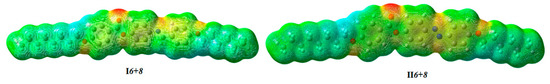 Molecular Electrostatic potentials (MEP) of I6+8 and II6+8.
