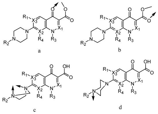 - Domagala, J.M.; Hanna, L.D.; Heifetz, C.L.; Hutt, M.P.; Mich, T.F.; Sanchez, J.P.; Solomon, M. New structure-activity relationships of the quinolone antibacterials using the target enzyme. The development and application of a DNA gyrase assay. J. Med. Chem. 1986, 29, 394–404. [Google Scholar] [CrossRef]
