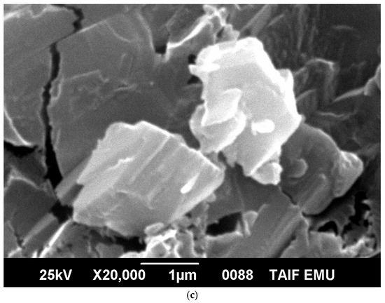 (a) SEM micrograph of Complex 1; (b) SEM micrograph of Complex 2; (c) SEM micrograph of Complex 3.