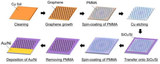 - Li, X.; Zhu, Y.; Cai, W.; Borysiak, M.; Han, B.; Chen, D.; Piner, R.D.; Colombo, L.; Ruoff, R.S. Transfer of Large-Area Graphene Films for High-Performance Transparent Conductive Electrodes. Nano Lett. 2009, 9, 4359–4363. [Google Scholar] [CrossRef]