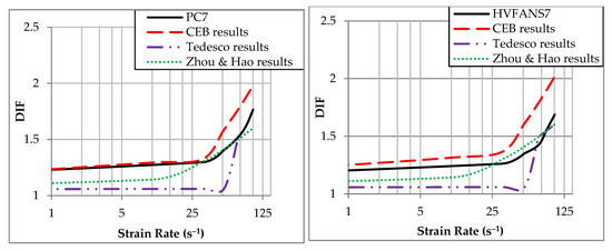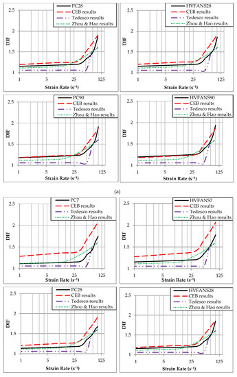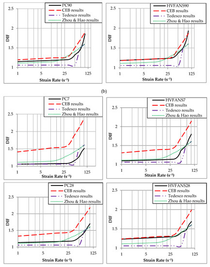 - In 1993, CEB [84] proposed a formula to estimate the DIF of concrete in compression within a strain rate range reached up to 300 s−1:where is static strain rate that equals to , , and is static compressive strength in MPa.