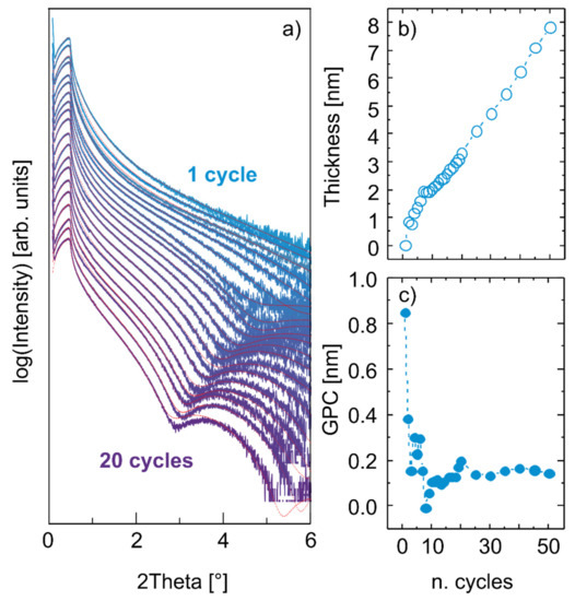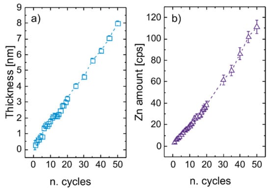 - Perrotta, A.; Pilz, J.; Pachmajer, S.; Milella, A.; Coclite, A.M. On the transformation of “zincone”-like into porous ZnO thin films from sub-saturated plasma enhanced atomic layer deposition. Beilstein J. Nanotechnol. 2019, 10, 746–759. [Google Scholar] [CrossRef]