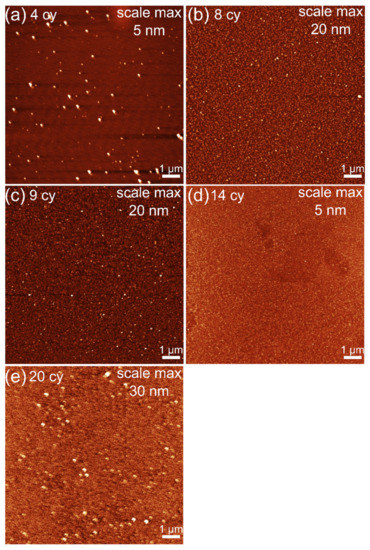 - Puurunen, R.L.; Vandervorst, W. Island growth as a growth mode in atomic layer deposition: A phenomenological model. J. Appl. Phys. 2004, 96, 7686–7695. [Google Scholar] [CrossRef]