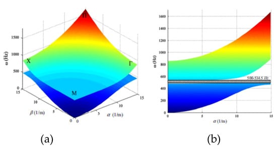- Kushwaha, M.; Halevi, P.; Martínez, G.; Dobrzynski, L.; Djafari-Rouhani, B. Theory of acoustic band structure of periodic elastic composites. Phys. Rev. B 1994, 49, 2313–2322. [Google Scholar] [CrossRef]