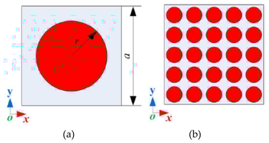 The plane wave expansion method [14,19,20,21,22] is the earliest and most widely used method in the theoretical analysis of phononic crystals and acoustic metamaterials. In this method, the physical quantities such as displacements and elastic constants in the wave equation are expanded by a Fourier transform in the form of superposition of plane waves in the inverse lattice space, and then the wave equation is solved to obtain the dispersion relationship between the characteristic frequency and the wave vector, that is, the band structure. The plane wave expansion method can be used for two-dimensional and three-dimensional band structures. In the calculation of solid [14,19,20], liquid- liquid [21,23,24], and solid-gas [25,26,27,28] systems, great success was achieved with the band gaps of phononic crystals and acoustic metamaterials. However, this method has certain limitations, as its convergence is slow, and it may even diverge during expansion, which makes it impossible to solve.