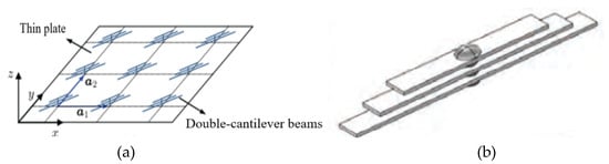 Schematic diagram of a multi-frequency locally resonant phononic plate: (a) Schematic diagram of the phononic plate with several periodic unit cells; (b) schematic diagram of the attached double -cantilever beams [36].
