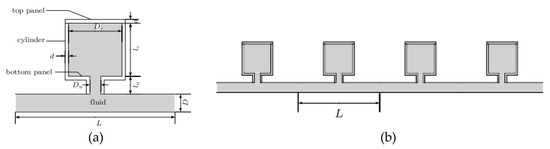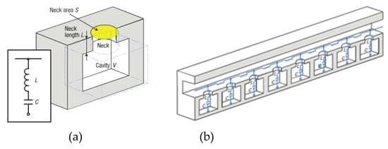 The schematic diagram of proposed structures: (a) One-dimensional Helmholtz resonator; (b) Helmholtz resonator composed of periodic arrangements [38].