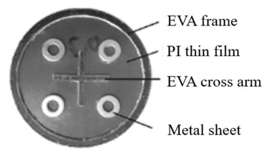 In 2020, Zhou et al. [50] proposed a polymorphic anti-resonance cooperative thin-film acoustic metamaterial (see Figure 13). The material consists of four metal foils and a cross-shaped flexible ethylene-vinyl acetate (EVA) material swing arm attached to the surface of a polyimide (PI) film, and uses EVA material as a frame. The study found that the material has achieved widening of the low frequency sound insulation band and improvement of sound insulation.