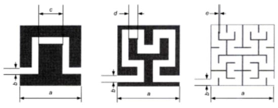 The same year, Wang et al. [54] designed an S-shaped groove structure in a square lattice (see Figure 14). They found that the structure can produce a more complete and larger band gap in the lower frequency range compared to a Jerusalem cross groove structure with the same lattice parameters.