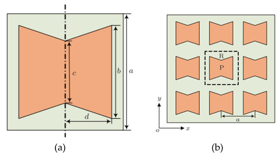 The unit cell of the metamaterial plate: (a) front view, (b) perspective view [48].