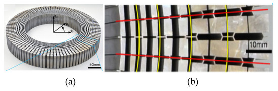 In 2017, Jiang et al. [39] adopted a double-opening internal and external cavity design to obtain a double-opening Helmholtz periodic structure (see Figure 9). It is found that the structure has good low-band gap characteristics, and its lowest band-gap section is 86.9–138.2 Hz. At a certain outer diameter, the low-band gap is affected by the arc length of the cavity, the internal and external cavity spacing, and the spacing between cells.