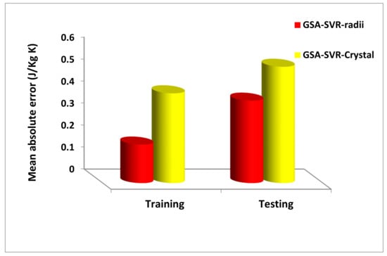 Comparison between the GSA-SVR-radii and GSA-SVR-crystal models on the basis of the mean absolute error.