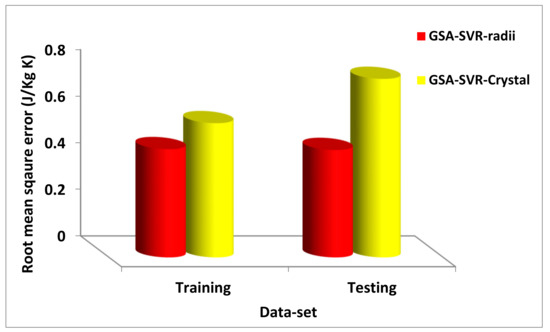 Comparison between the GSA-SVR-radii and GSA-SVR-crystal models on the basis of the root-mean-square error.