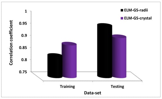 Comparison between the ELM-GS-radii and ELM-GS-crystal models on the basis of the correlation coefficient.