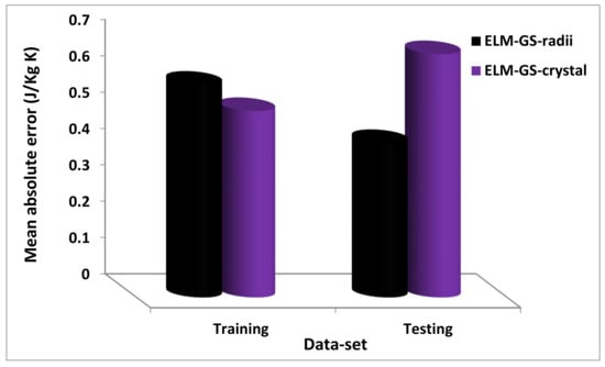 Comparison between the ELM-GS-radii and ELM-GS-crystal models on the basis of the mean absolute error.