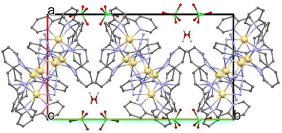 Packing plot of [Cd6(TPA)4(μ3-1,1,3-N3)4(μ2-1,1-N3)6](ClO4)2·2H2O (1).
