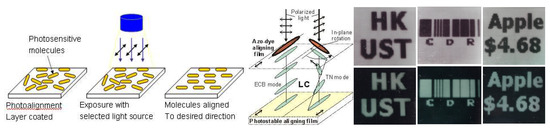Photopatterning via advanced photoalignment technology can make a great contribution to the development of the new classes of such devices. Photoalignment possesses obvious advantages over the usual “rubbing” treatment of the glass substrates of LC display (LCD) cells. Possible benefits for using such techniques include [