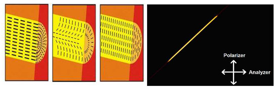 19]. The refractive index of the LC can be easily tuned by modifying the electric field or temperature, therefore LCs are suitable for this purpose. The technique of light reconfigurable alignment of LC in glass micro-tubes and in PCF was developed (