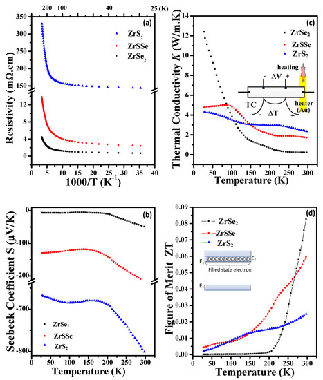 - Patel, K.R. Thermoelectric Power Measurements of Zirconium Sulphoselenide Single Crystals. Int. J. Phys. Math. Sci. 2012, 2, 74–85. [Google Scholar]
