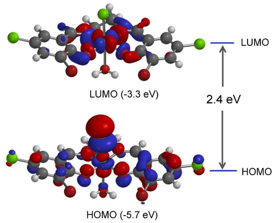 It is known that the electronic properties and reactivity of complex can be elucidated by the analysis of the frontier molecular orbitals [41]. The fit view of experimental and optimized structures of the title compound is given in Figure 3 and Figure S2 (Supplementary Materials). The bond distances and angles of the optimized molecular structure are basically consistent with the experimental structure; generally slight differences are observed because the optimized geometry was obtained by gas-phase DFT optimizations [42]. Selected frontier molecular orbitals three-dimensional plots of 1 are given in Figure 4. The HOMO surface is mainly localized around benzene rings and the coordination chlorine atom, and the LUMO around the metal centers and -C=N- double bond showing an effective communication from π-orbitals throughout the ligand.
