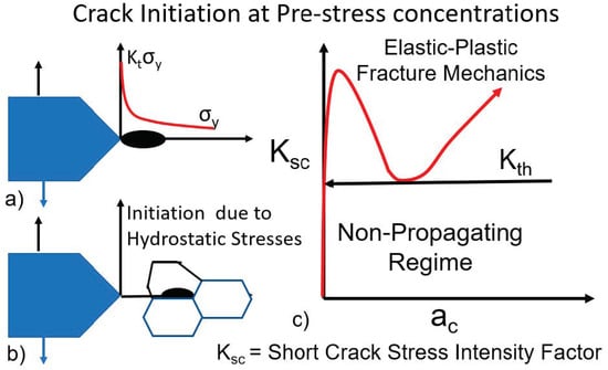 2.3. Crack Initiation at Pre-Existing Stress Concentrations