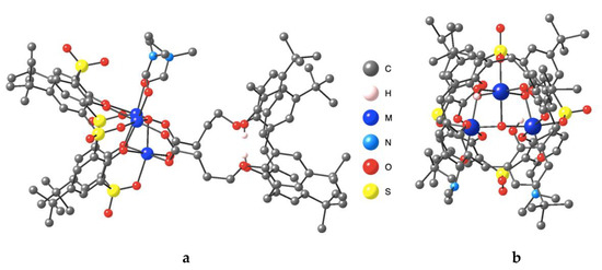It should be noted that metacyclophanes, a subclass of calix[4]arene compounds, have been reported as being able to form metallamacrocycles, using metallic cations like Co(II), Cu(II), Zn(II), Hg(II) and Ag(I) [27,28,29,30].