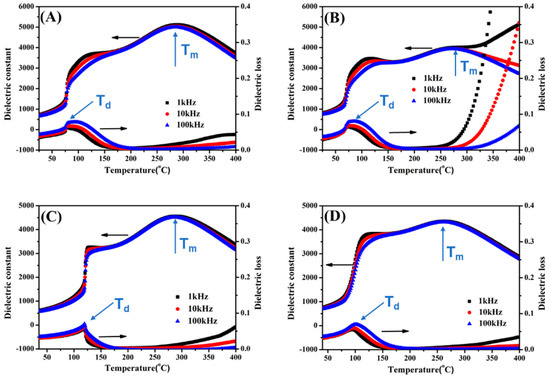 - Zhang, S.-T.; Yang, B.; Cao, W. The temperature-dependent electrical properties of Bi0.5Na0.5TiO3-BaTiO3-Bi0.5K0.5TiO3 near the morphotropic phase boundary. Acta Mater. 2012, 60, 469–475. [Google Scholar] [CrossRef]