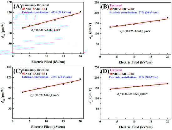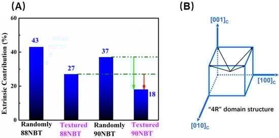 | Randomly oriented 90NBT ceramic | R | 590 | 0.029% | 0.13% | 110 | 60% | 180 | 13% | 26% |
