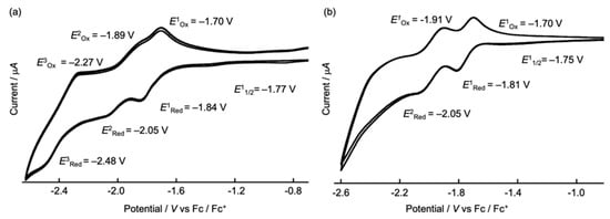 Cyclic voltammetry of 1.0 mM for 112 (a) and 16 (b) in a 0.10 M solution of Bu4NPF6 in CH2Cl2 at a scanning rate of 100 mVs–1.
