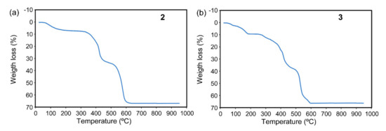 3.2. Thermal Stability of [Cd(H2EDTA)(H2O)]·2H2O and the Polymeric Compounds 1 to 3