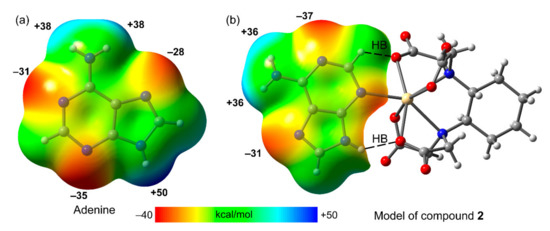 - Bugella-Altamirano, E.; Choquesillo-Lazarte, D.; González-Pérez, J.M.; Sánchez-Moreno, M.J.; Martín-Ramos, R.; Covelo, B.; Carballo, R.; Castiñeiras, A.; Niclós-Gutiérrez, J. Three new modes of adenine-copper(II) coordination: Interligand interactions controlling the selective N3-, N7- and bridging μ-N3,N7–metal-bonding of adenine to different N-substituted iminodiacetato-copper(II) chelates. Inorg. Chim. Acta 2002, 339, 160–170. [Google Scholar] [CrossRef]
